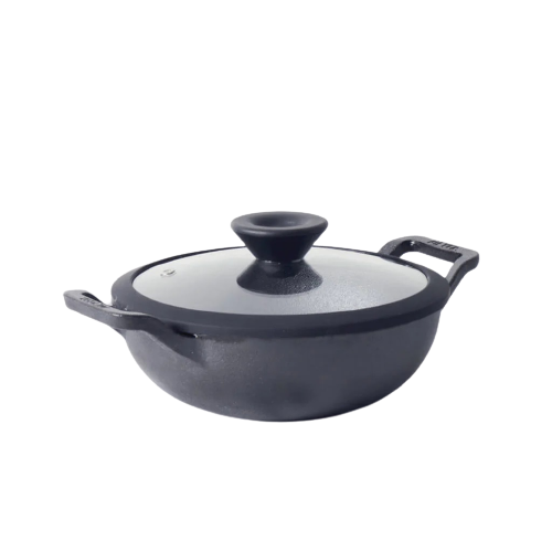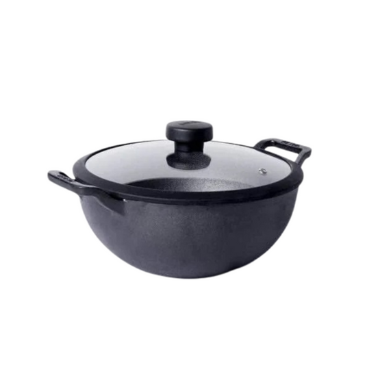 Meyer Pre-Seasoned Cast Iron Deep Kadai with Glass Lid