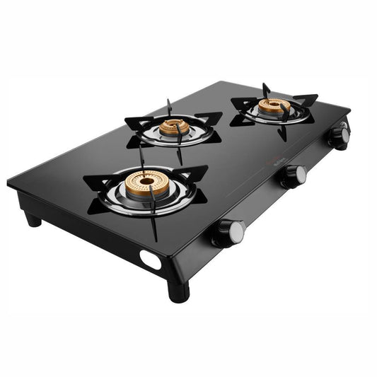 Preethi Blu Flame Sparkle Power Duo GTS-403 Toughened Glass Top Gas Stove, 3 Burner