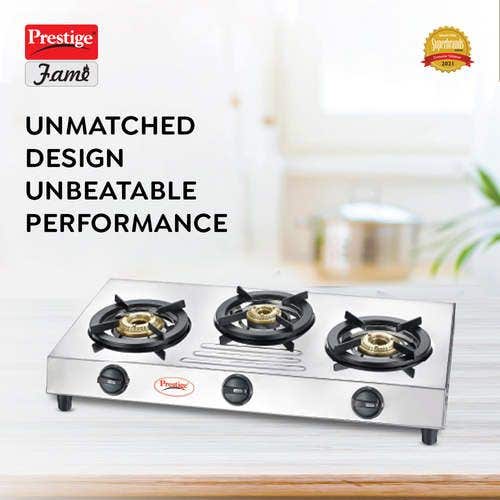 Prestige Fame Stainless Steel Gas Stove, 3 Burner