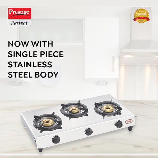 Prestige Perfect Stainless Steel Gas Stove, 3 Burner