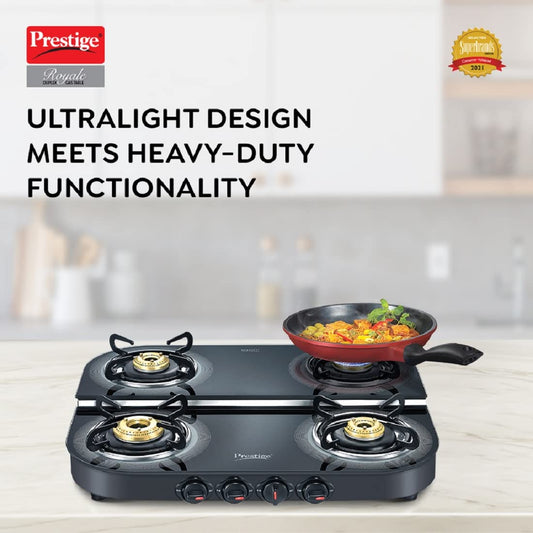 Prestige Royale Duplex DGT 04 Schott Glass Top Gas Stove, 4 Burner