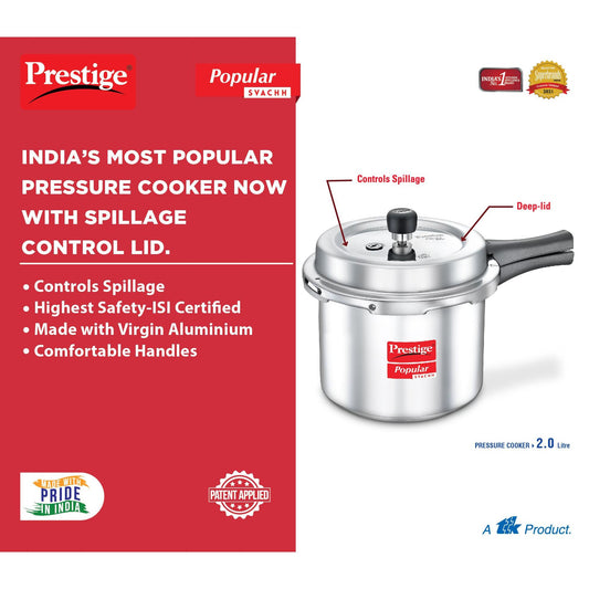 Prestige Popular Svachh Aluminium Non-Induction Base Outer Lid Pressure Cooker, 2 Litre