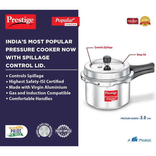Prestige Popular Plus Svachh Aluminium Induction Base Outer Lid Pressure Cooker, 3 Litres