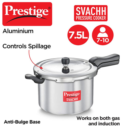 Prestige Svachh Aluminium Induction Base Outer Lid Pressure Cooker, 7.5 Litres