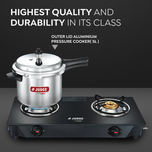 Judge by Prestige Basics Non-Induction Base Aluminum Outer Lid Pressure Cooker, 5 Litres