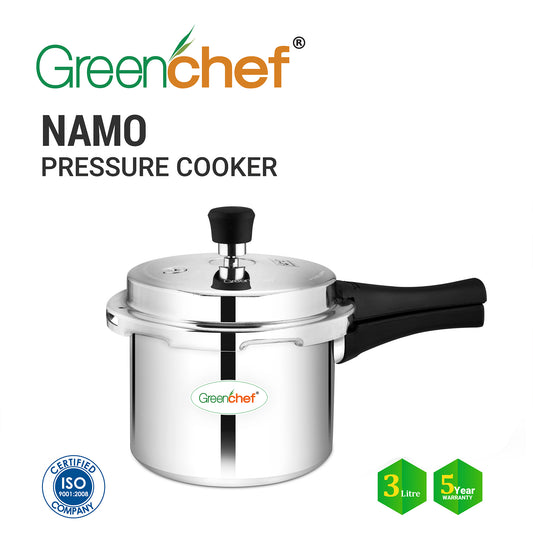 Greenchef Namo Aluminium Non-Induction Base Outer Lid Pressure Cooker, 3 Litres