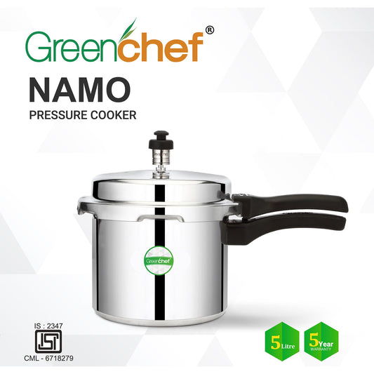 Greenchef Namo Aluminium Non-Induction Base Outer Lid Pressure Cooker, 5 Litres