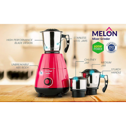 Greenchef Melon Stainless Steel Mixer Grinder, 600W, 3 Jars