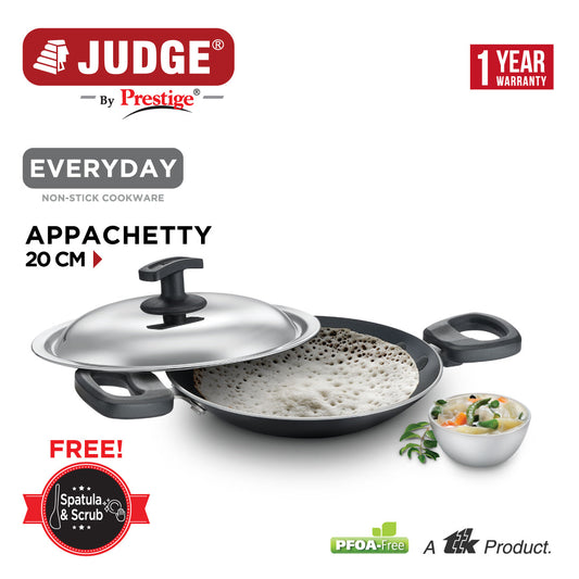Judge by Prestige Everyday Non-Stick Non-Induction Base Appachatty with Lid, 200 MM