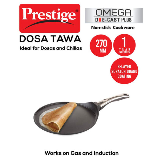 Prestige Omega Die-Cast Plus Aluminium Induction Base Non-Stick Tawa, 270MM