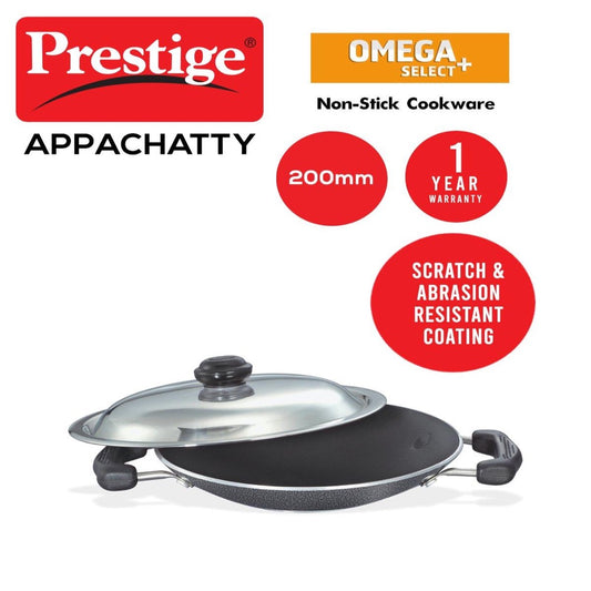 Prestige Omega Select Plus Aluminium Non-Induction Base Non-Stick Appachatty with Lid, 200MM