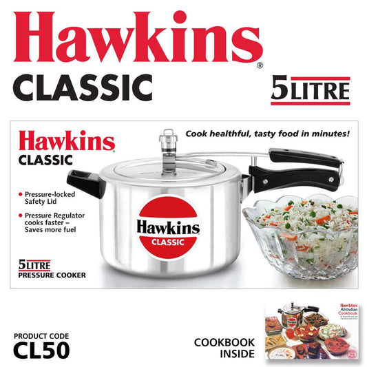 Hawkins Classic Aluminium Non-Induction Base Inner Lid Pressure Cooker, 5 Litres