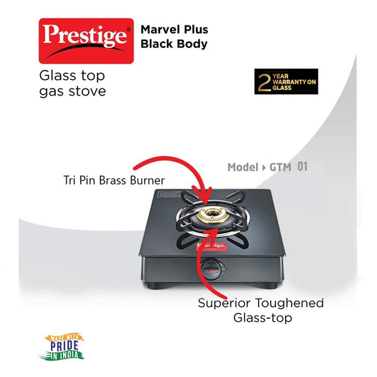 Prestige Marvel Plus GTM 01 Black Toughened Glass Top Gas Stove, 1 Burner