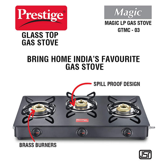 Prestige Magic GTMC 03 Toughened Glass Top Gas Stove, 3 Burner