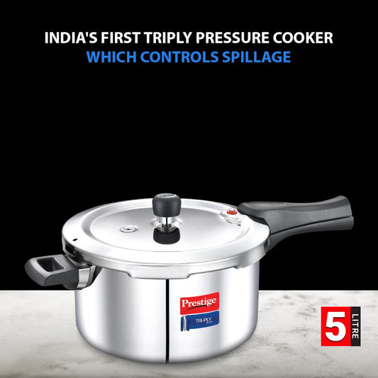 Prestige Svachh TriPly Body Stainless Steel Induction Base Outer Lid Pressure Cooker, 5 Litres