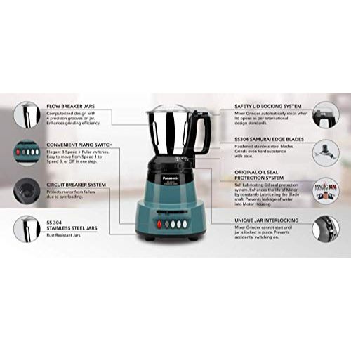 Panasonic MX-AV325BC Coral Blue Mixer Grinder, 600W, 3 Jar